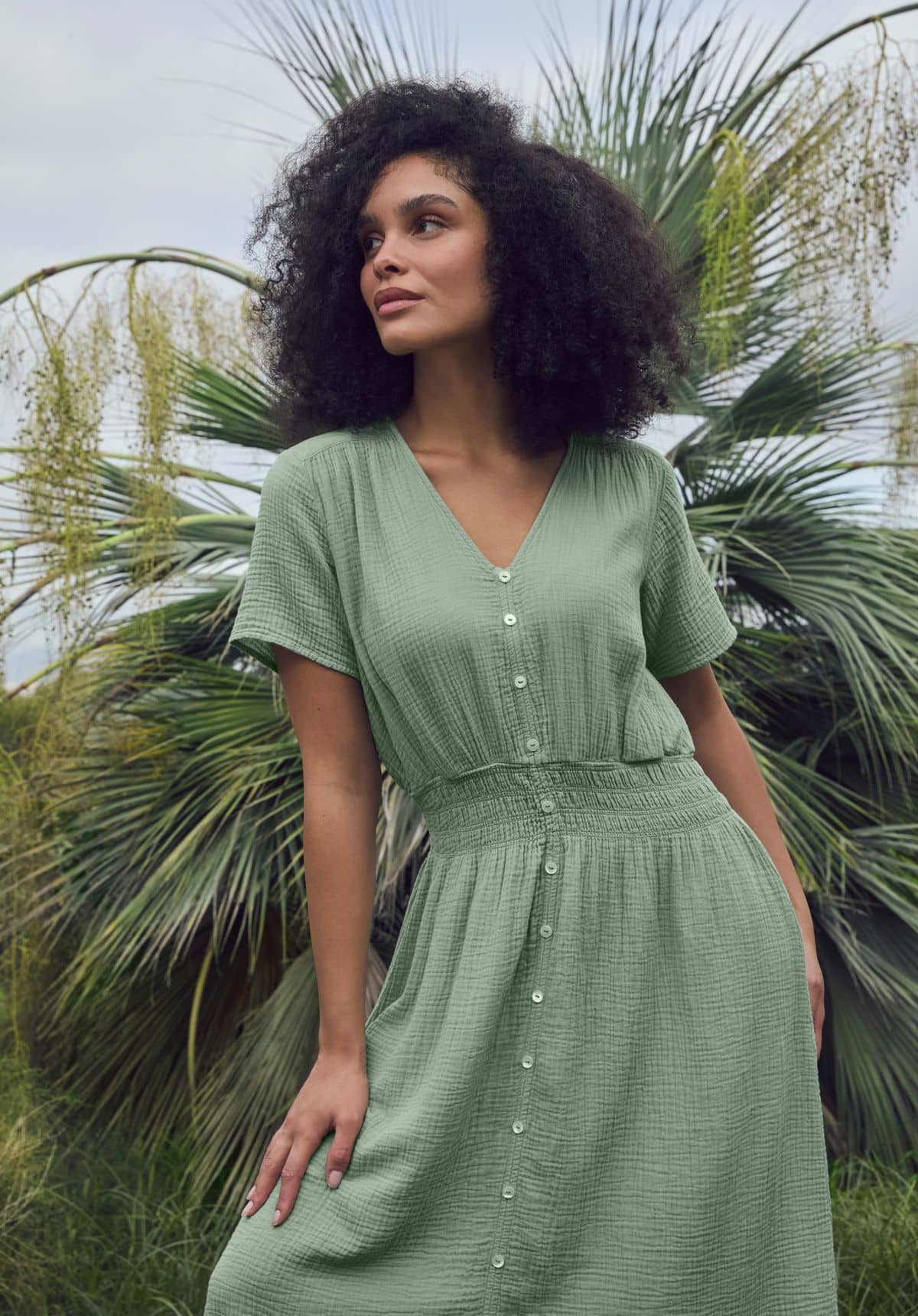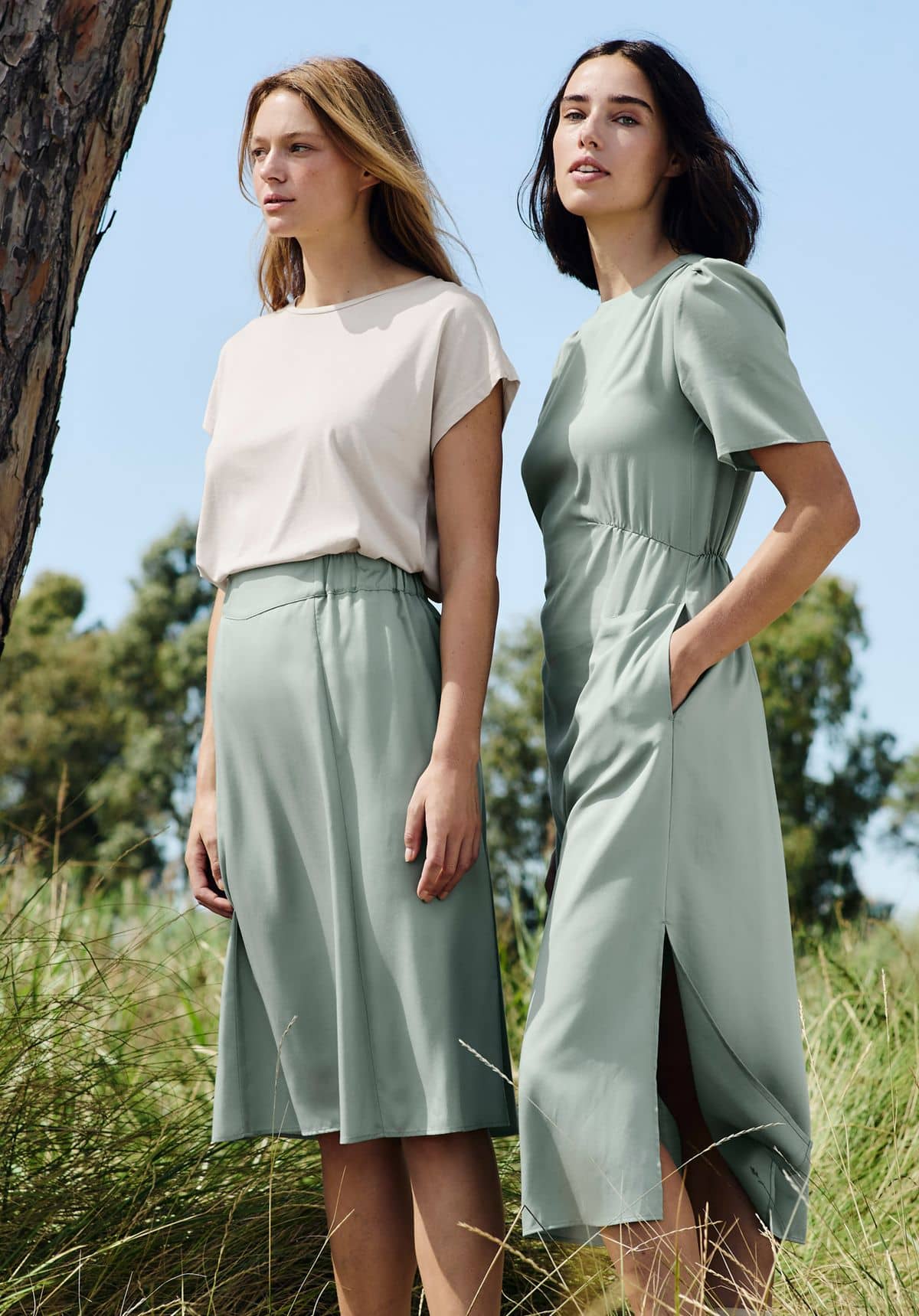 Mit fließenden Silhouetten, zarten Prints und frischen, natürlichen Farben wird unsere Kompetenz für nachhaltige Materialien modern interpretiert – für Looks, die Balance und Lebensfreude verkörpern.